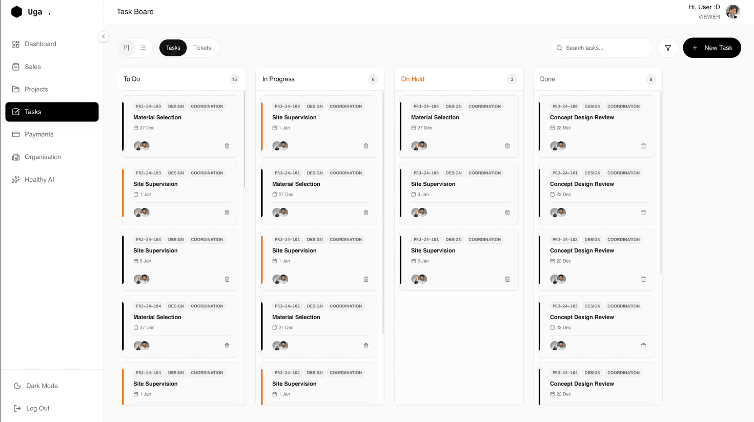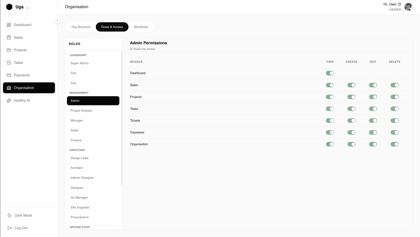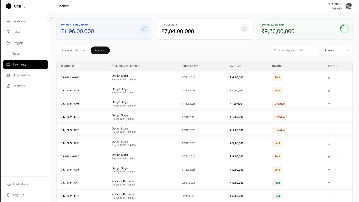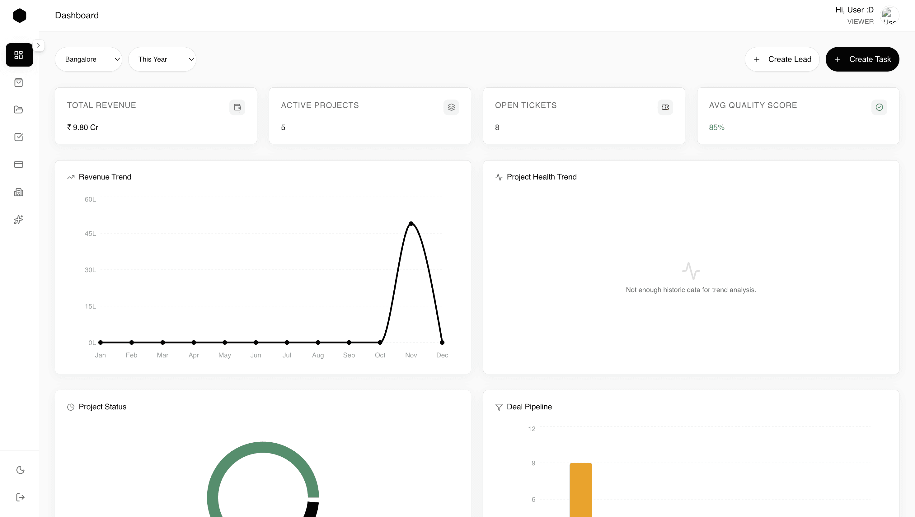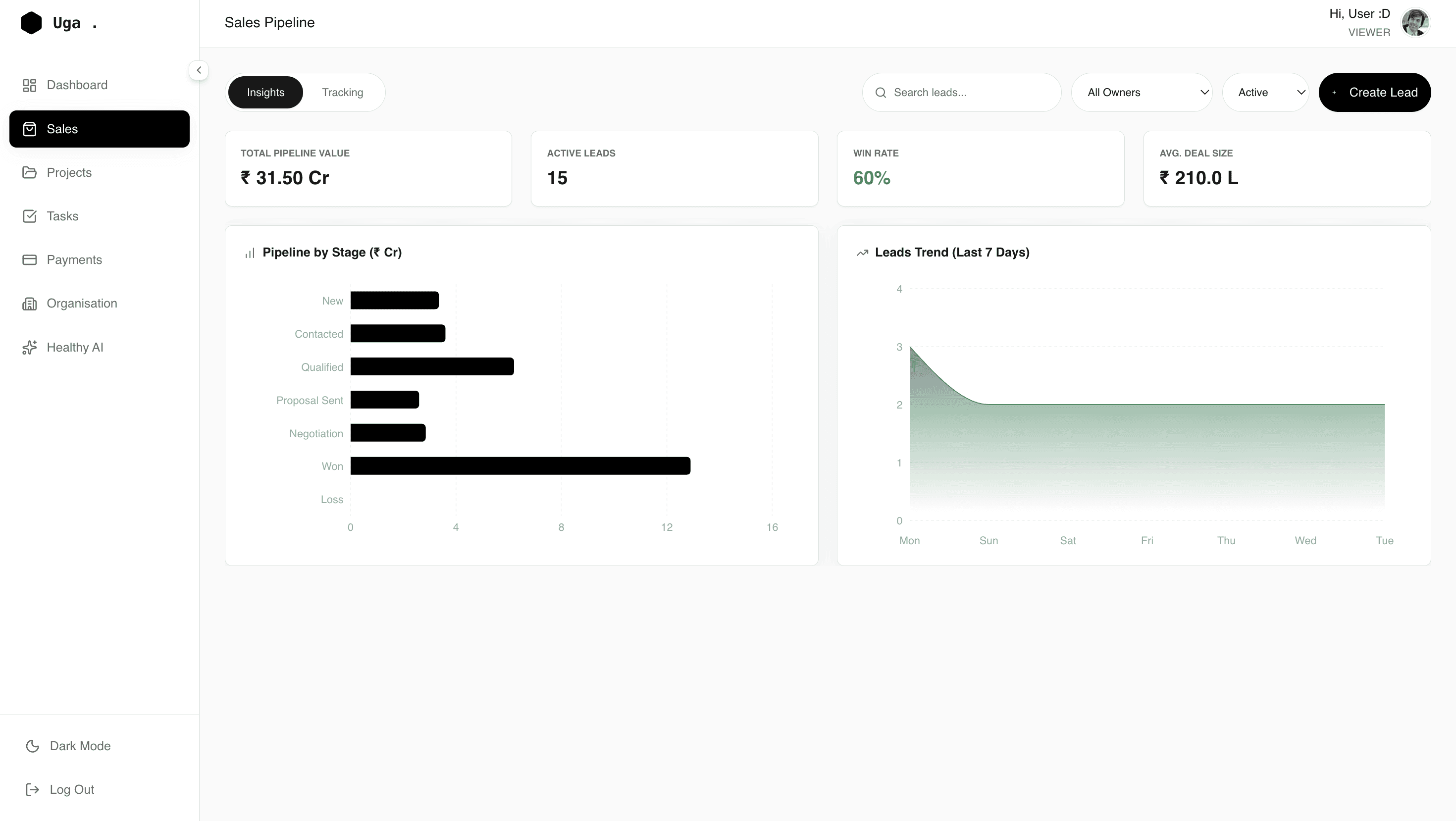 A real, built-and-shipped CRM used to manage leads, projects, tasks, invoices, and role-based access across teams.